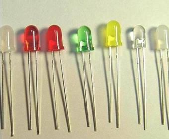 两脚的发光二极管,一般发单色光,也有两脚双色发光二极管。