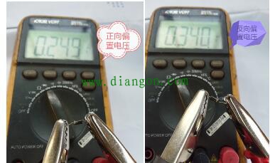 上面的二极管已经完全击穿,下面这支二极管则属于半击穿状态http://www.diangon.com/版权所有(正向偏置电压有读数,但是低于正常值;反向偏置电压非无穷大)