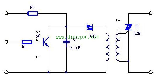 工作过程:电压正常工作时候,加在双向触发二极管两端的电压小于转折电压,此时VD不导通,同时双向可控硅T1也处于截止状态,输出负载RL可得到正常的供电。一旦供电电压超出限定值时,也就是说瞬态电压超过双向触发二极管转折电压,VD导通并触发双向可控硅T1也导通,使后面的负载RL免受过压损害。