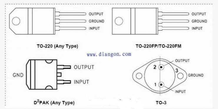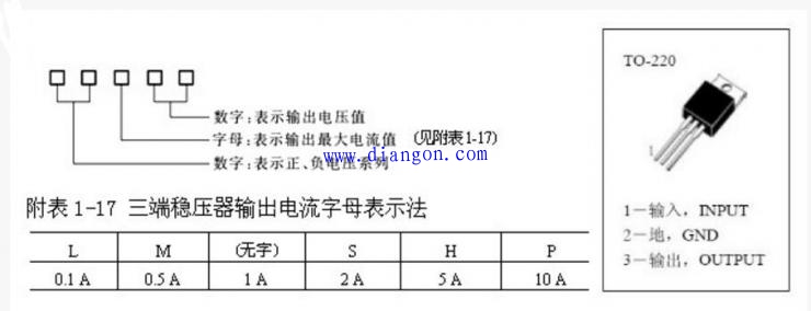 (2) 三端稳压器的型号规格和管脚分布。