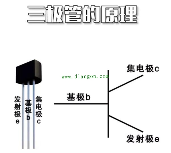 如图所示,顾名思义三极管就是有三个极,也就是三个引脚,即基极b 集电极c 发射极e