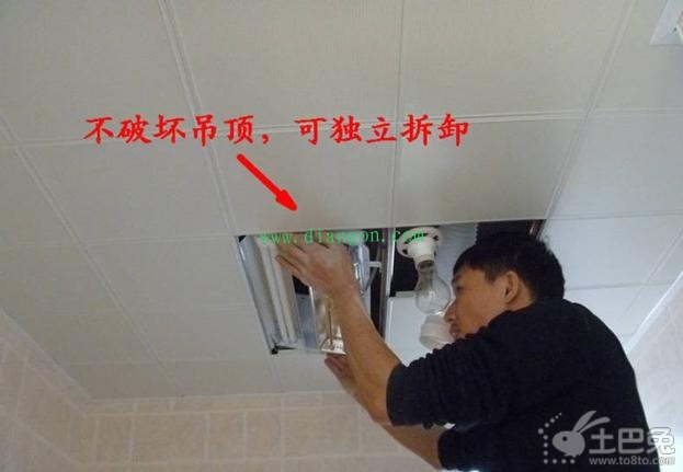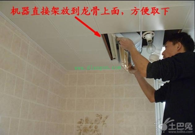 小编提醒:浴室内正确的安装顺序是先装浴霸、排风扇,然后再做吊顶。不要把排风扇或浴霸直接用螺丝钉安装在铝扣板上,可用膨胀螺栓直接吊在顶部的混凝土上。