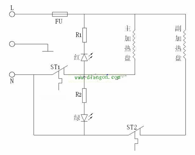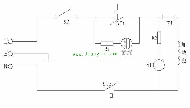 2.指示灯不亮,但能烧水;这是指示灯支路故障,可能是该支路出现了断路或指示灯损坏。指示灯亮但不能烧水,这种故障是加热盘出现了断路;