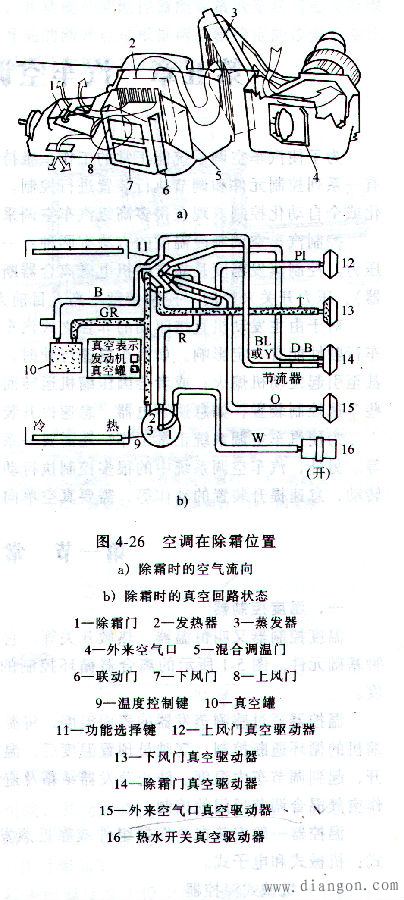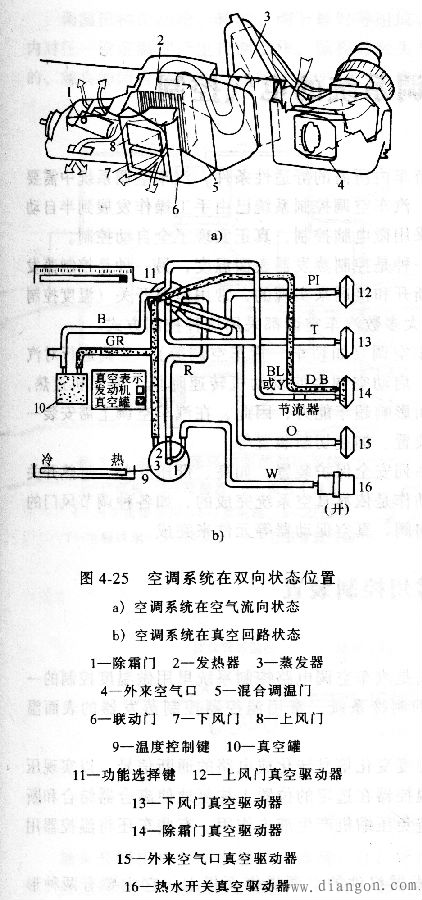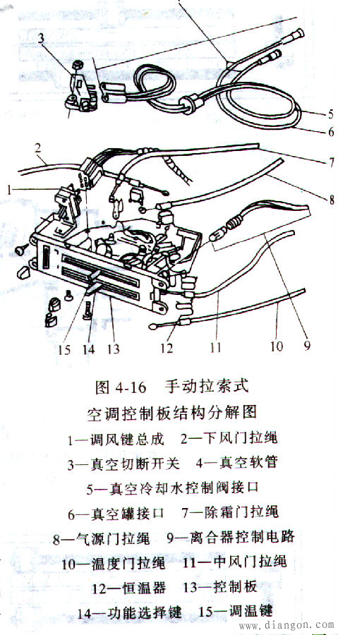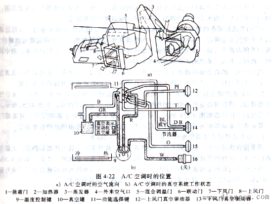 汽车空调配系统各风门的位置变化主要由拉绳操纵机构,真空操纵机构或电机伺服装置