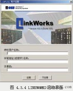 LINKWORKS门禁管理系统安装简单,根据提示完成安装过程,安装好后启动界面如图4.3.4所示,在此界面输入正确的注册码,即可正常使用LINKWORKS门禁管理系统。