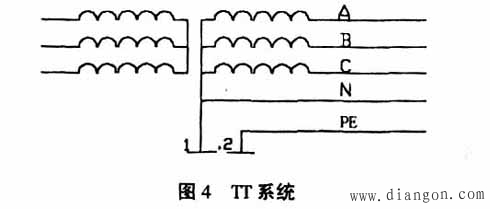 通常称TT系统为三相四线接地系统。该系统常用于建筑物供电来自公共电网的地方。TT系统的特点是中性线N与保护接地线PE无一点电气连接,即中性点接地与PE线接地是分开的。该系统在正常运行时,不管三相负荷平衡不平衡,在中性线N带电情况下,PE线不会带电。只有单相接地故障时,由于保护接地灵敏度低,故障不能及时切断,设备外壳才可能带电。正常运行时的TT系统类似于TN-S系统,也能获得人与物的安全性和取得合格的基准接地电位。随着大容量的漏电保护器的出现,该系统也会越来越作为智能型建筑物的接地系统。从目前的情况来看,由于公