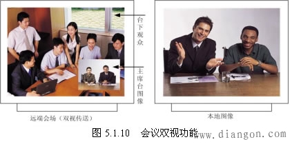通常的视讯终端只能同时传送1路摄像机活动图像,即使终端同时接了多台摄像机,通常只能采用切换方式选择其中1路传送。选择内置双视传送功能的视频会议终端,在不增加会议带宽的情况下,可以同时将2路的摄像机实时图像传送给远端,通过该功能,大大增强了视频会议的临场效果。例如,主席会场的终端可将会场中与会者的活动图像和主席台上演讲人活动图像同时传到远端会场,这样各分会场就可以同时看到主会场与会者的图像以及演讲人的实时图像,更真实的再现主会场的情况。