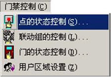 在主界面的菜单栏上单击门禁控制(C),将出现门禁控制(C)下拉式菜单, 如下图,在此菜单中您可以设置点的状态控制(S)、联动组的控制(L)、门 的状态控制(D)和用户区域控制(Z)。