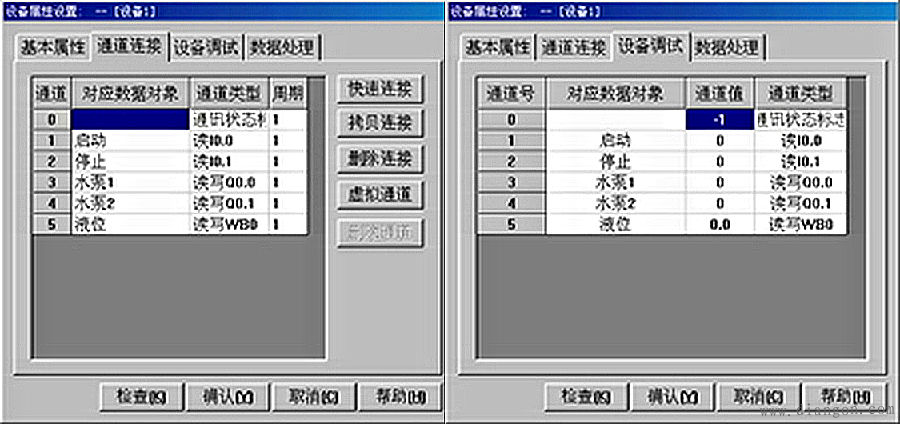 对应的变量进行左右对应即可生成。一般只将被使用的通道开辟出来,开通的通道与MCGS数据库变量有连接。