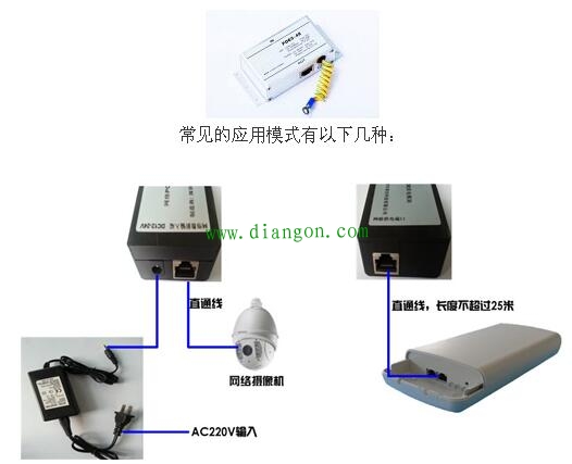 第一种,需要8芯的网线,通过4、5、6、7号空闲端供电,其他的数据端则用来传输数字网络信号,在这种网线里信号和电源其实是通过不同的线传输的,只是表面看不出来。www.diangon.com