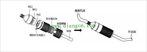 3、制作网线的水晶头,并将O型胶圈套在摄像的网口上;