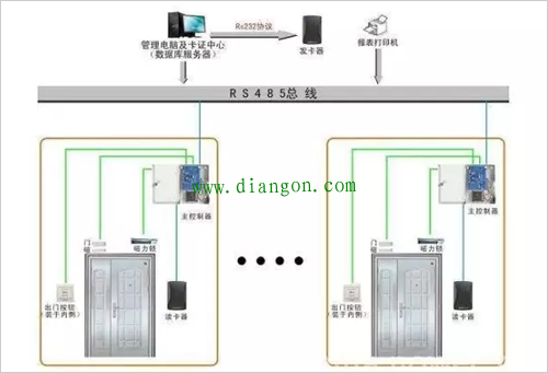 2、RS485总线制门禁系统,一般为手拉手。一般选用RVVP型线缆