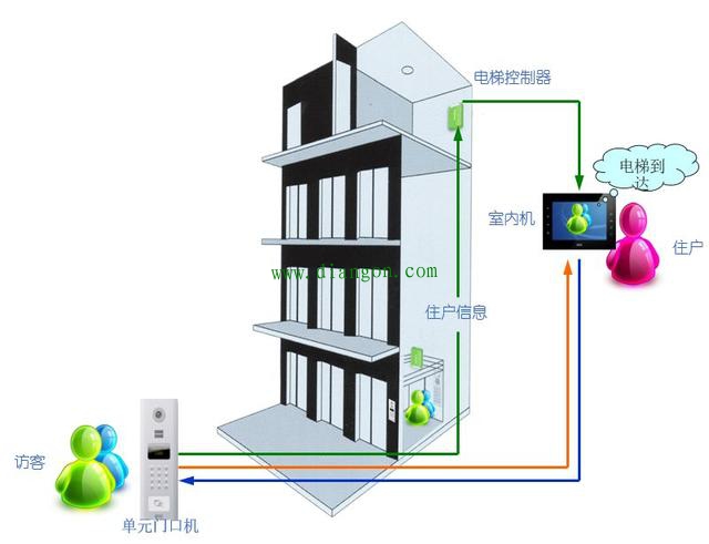 住户互访:住户通过对讲室内机呼叫被访问住户,同时被访问住户通过室内机菜单进行确认,电梯到达访问者楼层并接送访问者到达需访问的楼层;