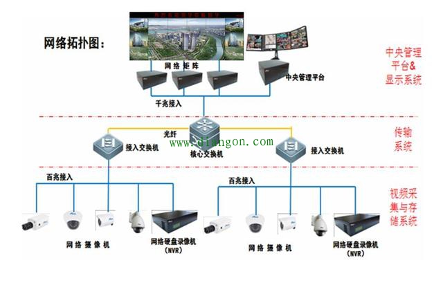 数字监控的设计是采用基于小区计算机网络系统为传输平台的数字监控系统进行设计,各个监控点采用标准以太网接口接入智能化专网中。