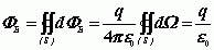 (3)单个点电荷在任意闭合曲面外 以 即