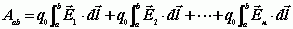可见,电场力对检验电荷所作的功与路径无关,只与起点和终点的位置有关,并与检验电荷的电量成正比。 2、任意带电体系的电场 设有一组点电荷,在它们所激发的电场中,将检验电荷由点移动到点,在此过程中电场力所作的功为