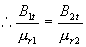 磁场的边界条件给出磁介质分界面处,磁场的物理量所应遵守的规律。以下讨论两种各向同性的均匀磁介质分界面处,  行为: 1. 的法向分量:  高斯面上下底面积为:  , 高为: h , 根据高斯定理:  即:  , 在均匀磁介质的分界面处磁感应强度矢量的法向分量连续。 又  , 在均匀磁介质的分界面处磁场强度矢量的法向分量不连续。 2. 的法向分量:
