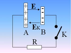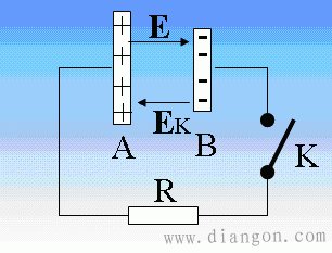未接通:电源处于开路状态,FK将正电荷从B经过电源内部送到正极A,结果正、负极分别积累正、负电荷,形成静电场E,一直到E+EK=0时,移送过程暂时停止,达到平衡状态,这时,正、负极有一定的电位差。