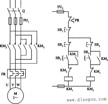 大多数机床的主轴或进给运动都需要正反两个方向运行,故要求电动机能够正反转。在电工学课程中我们学过,只要把电动机定子三相绕组任意两相调换一下接到电源上去,电动机定子相序即可改变,从而电动机就可改变方向了。