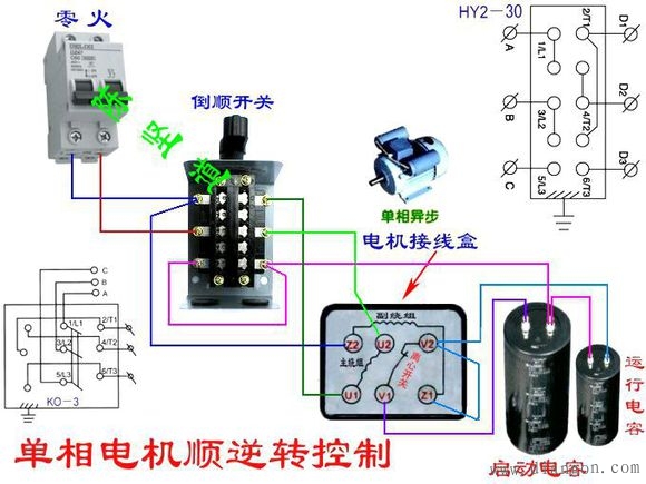 单相电机电容接线图_单相电机正反转实物接线图集_单相电机正反转原理图解