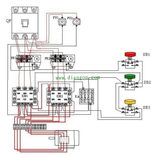 根据公式;n=60f/p,可知异步电动机的同步转速与磁极对数成反比,磁极对数增加一倍,同步转速n下降至原转速的一半,电动机额定转速n也将下降近似一半,所以改变磁极对数可以达到改变电动机转速的目的。这种调速方法是有级的,不能平滑调速,而且只适用于鼠笼式电动机。主要是通过以下外部控制线路的切换来改变电机线圈的绕组连接方式来实现。