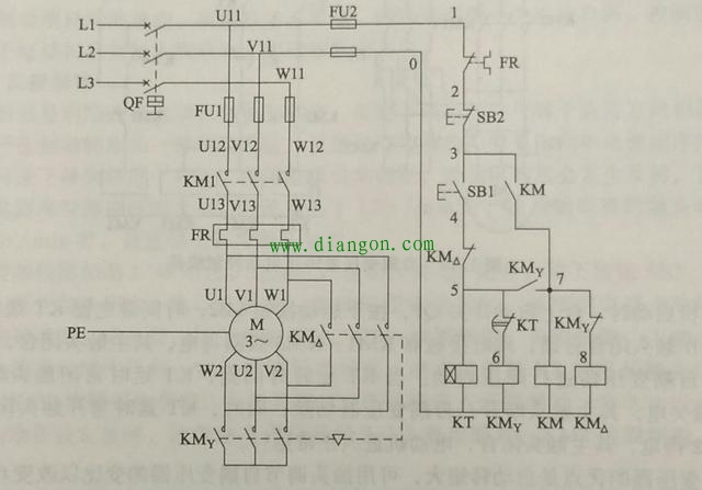 分析一下电路:KM是主接触器,与KM y 组成星形启动回路,与KM△组成三角形运行回路,KT是时间继电器。