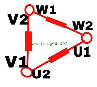 电动机的三角启动就是三个绕阻头尾相连,形成了一个三角形,所以称为三角启动如下图: