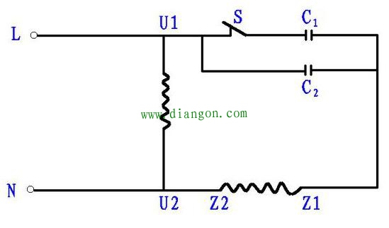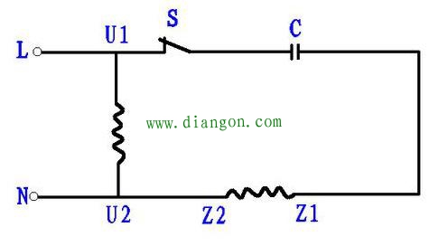 图1,单值电容启动型,当电机启动以后,转速达到额定转速百分之七十五时,离心开关S断开,将电容C和副绕组Z1、z2切断。这种运行在300W以上单相电机。