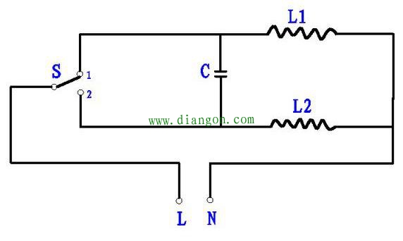 图3,双值电容型,当电机转速达到额定转速百分之七十五时,离心开关断开,将启动电容C1切掉。