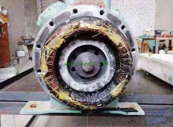 不料第二天本人居然接到了该电动机使用单位的电话,这台大修后的电动机在带载运行后竟然表现的十分无力!到达现场检查后,本人发现该电动机居然发生了绕组过热现象!经过一番调查核实后,引发这一现象的症结被本人找到了——原来徒弟将电动机转子部分装配好后,在未安装风叶的情况下便对电动机进行通电试机作业。(https://www.diangon.com/独家原创 版权所有!)因担心自己装配过程出现纰漏,徒弟便对电动机进行了长达近三个小时的测试!大家想在气温原本就爆热的环境下,无散热装置进行冷却的电动机必然会发生绕组过热现象呀!
