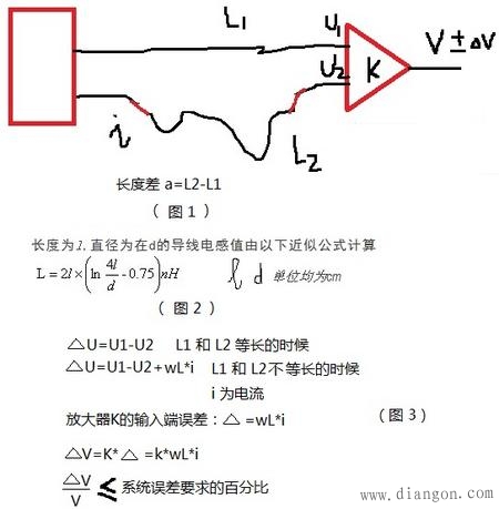 在线缆不等长的时候,△U的误差则由L2-L1的长度差导致的电感差异引起信号衰减程度不同,△U=U1-U2+wL*i(i为电流,取最大值的时候)。