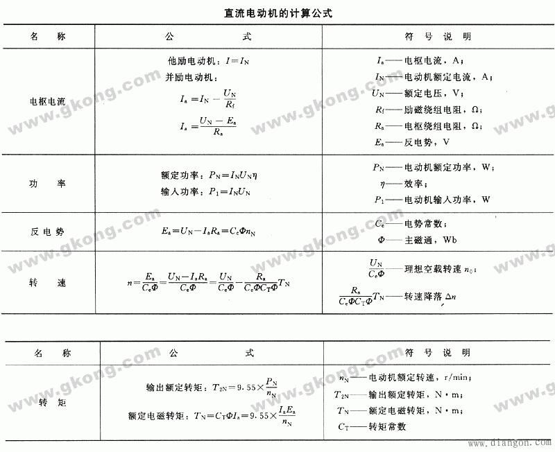 直流电动机计算公式