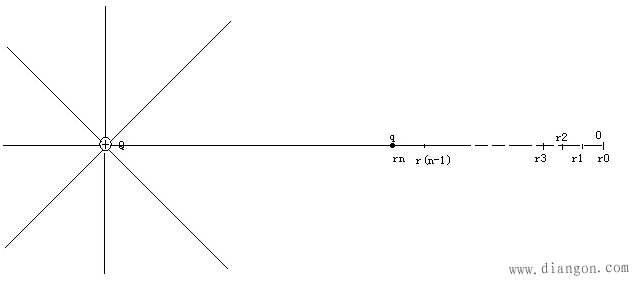将A到无穷远这段距离无限等分最远处距离为r0,A 处为rn,(0,1,2,……n为下标)
