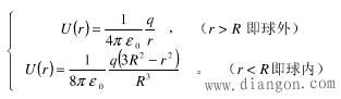 2、均匀分布的球体电荷(球体的半径为R,带电量为q)