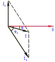 提高功率因数,常用的方法就是与电感性负载并联静电电容器(设置在用户或变电所中),其电路图和相量图如图1所示。