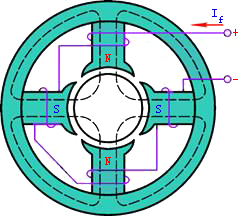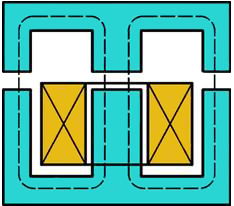 在变压器、电机、电磁铁等电工设备中常用磁性材料做成一定形状的铁心。铁心的磁导率比周围空气或其他物质的磁导率高得多,因此铁心线圈中电流产生的磁通绝大部分经过铁心而闭合。这种磁通的闭合路径,称为磁路。图1和图2分别表示四极直流电机和交流接触器的磁路。磁通经过铁心(磁路的主要部分)和空气隙(有的磁路中没有空气隙)而闭合。