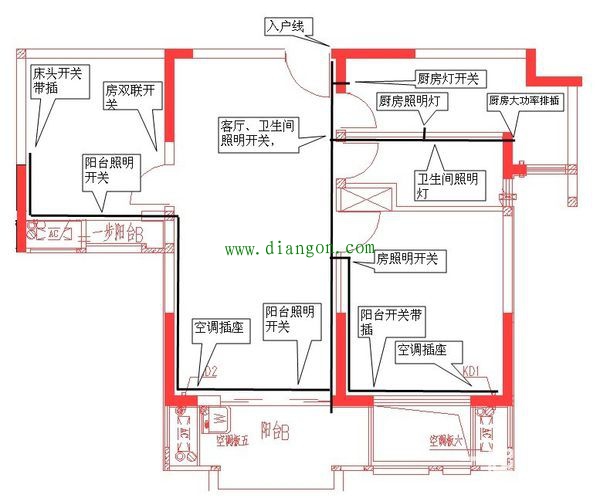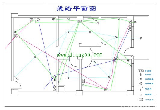 首先把你的电箱位置画出来,然后画线通到你要接的灯,插座连接到电箱,然后开关连拉到灯,这些你可以在同一层,用不同的颜色表示,但在算钱的时候,一根线可就不是一根线了,而是三根。diangon.com版权所有。