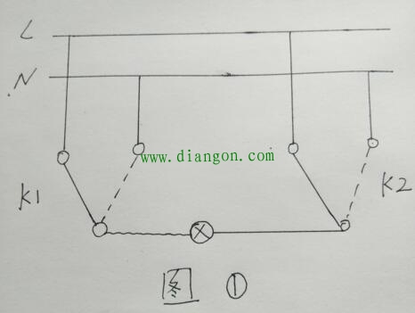 此种接线方法火线直接进入灯口,不论开关处于什么位置,灯口始终带电,存在不安全因素;正规接线图如图②所示该图中面板开关k1的接线端子L1也可以与k2的L2端子联接,k1的L2端子与K2的L1端子连接使用。