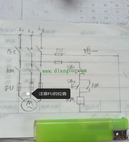 经排查发现,该次事故的“肇事者”为工地一台抽水用18.5KW三相异步电动机的控制回路。该水泵使用一只CJ10-60型交流接触器控制,其控制图见图一示。