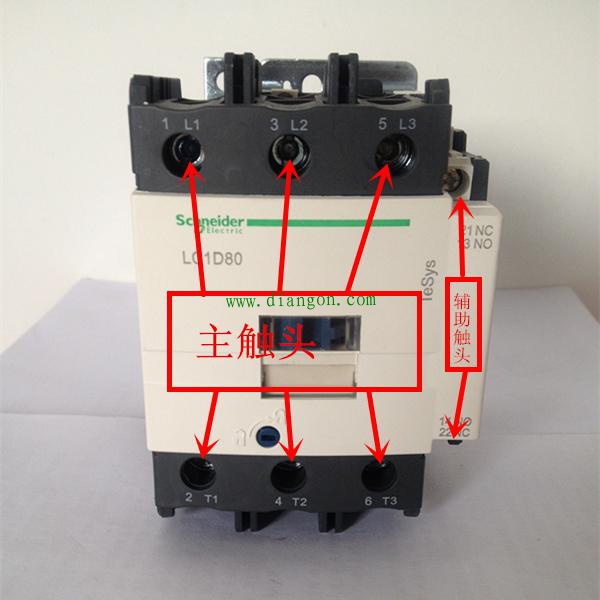 380伏交流接触器有三个主触头也就是电源进线和负载端出线,进线分别是三相火线L1 L2和L3,负载端出线分别是T 1 T 2和T 3,接触器主触头进线和出线上下一一对应,分别是L 1对应T 1,L 2对应T 2 L 3对应T 3,主触头在接触器不吸合的状态下是常开状态