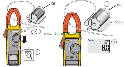 夹住一条流过电流的电线即可调整适当的量程即可进行测量。