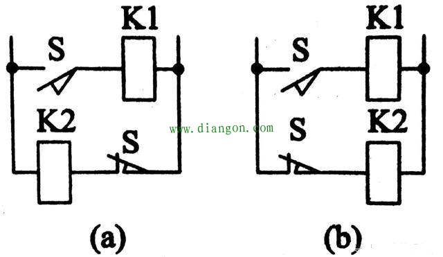 在交流控制电路中不能串联2个电器的线圈,如图3所示。即使外加电压是2个线圈的额定电压之和,也是不允许的。因为每个线圈上所分配到的电压与线圈阻抗成正比,2个电器动作是有先有后,不可能同时吸合。https://www.diangon.com/m415961.html假如交流接触器K2先吸合,由于K2的磁路闭合,线圈电感显著增加,从而使另一个接触器K1线圈电压达不到动作电压。故2个电器需要同时动作时其线圈应并联连接。