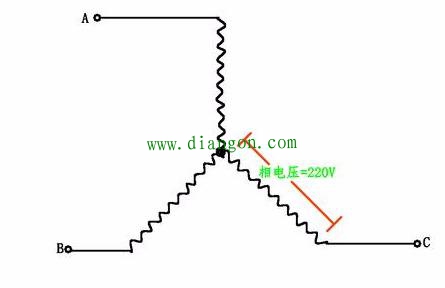 角形连接负载做星形连接时,线电压等于根号三倍相电压。