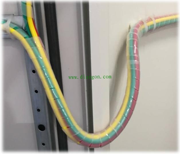 7:接线完成检查没有错误后装入配电柜,接线过门时须留有弧度,并套缠绕管保护。