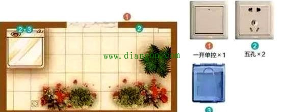 卫生间主药考虑的是照明和常用的插座,洗手台上方需要一个,电动的剃须刀和电动牙刷的充电、吹风机和其他等,diangon.com不然去卧室吹头发,整个房间都是头发丝!