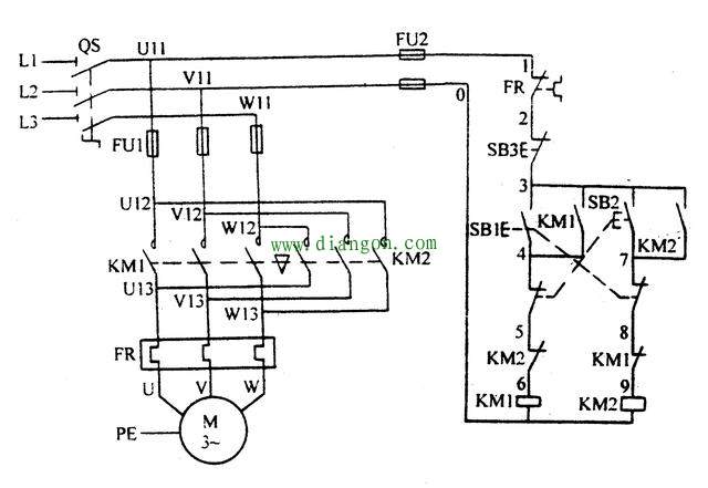 双重互锁控制电机的正反转更加的安全,这个电路里包含KM1和KM2电气互锁,SB1和SB2机械互锁,同时KM1和KM2都有自锁的效果。