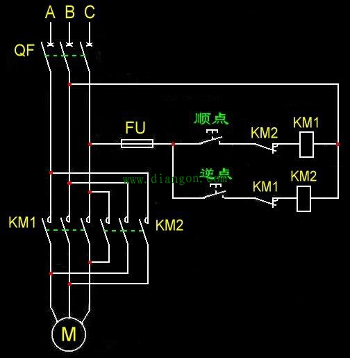 要点:KM2的常闭点串KM1的线圈,KM1的常闭点串KM2的线圈。