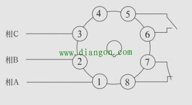 如图2,即为接线图。1、2、3接线柱分别接三相电源,5、6接线柱为常开,7、8为常闭。一般在送电回路当中,用到其常开点,也就是接5、6两个接线柱。