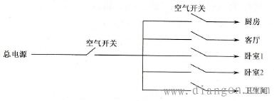 停电后用兆欧表测量室内线路的绝缘电阻,发现其阻值为0.3MΩ,显然线路绝缘不符合要求。究竟是什么线段绝缘不良呢?接下来采用分段检测方法测量,结果发现卧室2的绝缘电阻很小。进一步检查,原来是卧室内床头开关处导线破皮,经绝缘处理后故障排除。