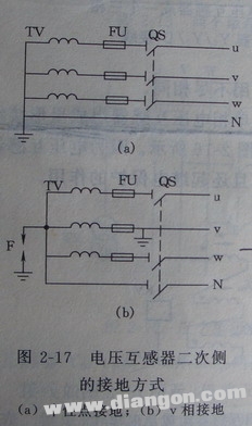 2)二次侧接地。电压互感器二次侧要有一个接地点,这主要是出于安全上的考虑。当一次、二次侧绕组间的绝缘被高压击穿时,一次侧的高压会窜到二次侧,有了二次侧的接地,能确保人员和设备的安全。另外,通过接地,可以给绝缘监视装置提供相电压。
